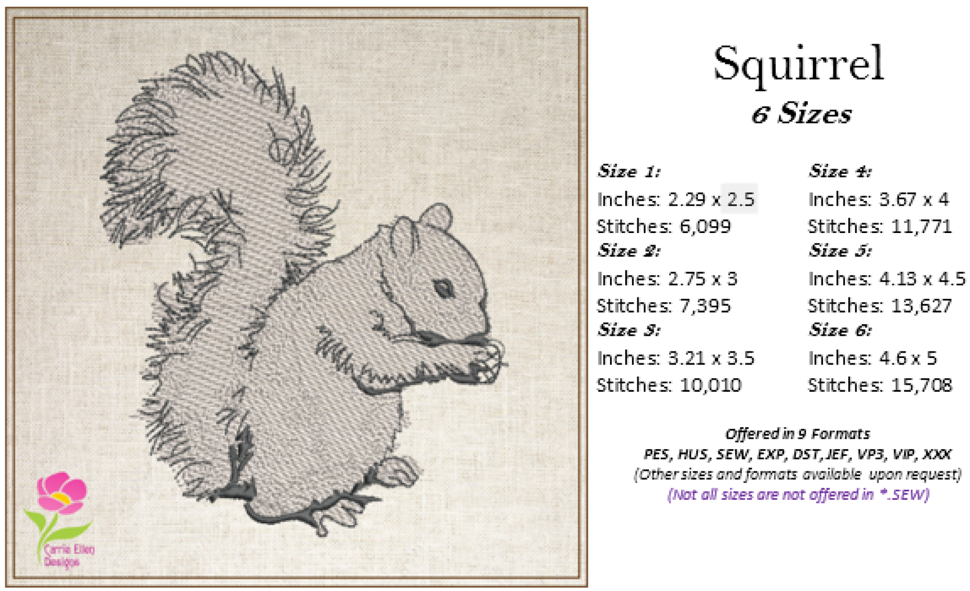 Add woodland charm to your next project with this Squirrel Machine Embroidery Design! Featuring a beautifully detailed sketch-style squirrel, this design brings a touch of the forest to your embroidery creations. With six sizes included, it’s ideal for a wide range of projects, from clothing to home décor.