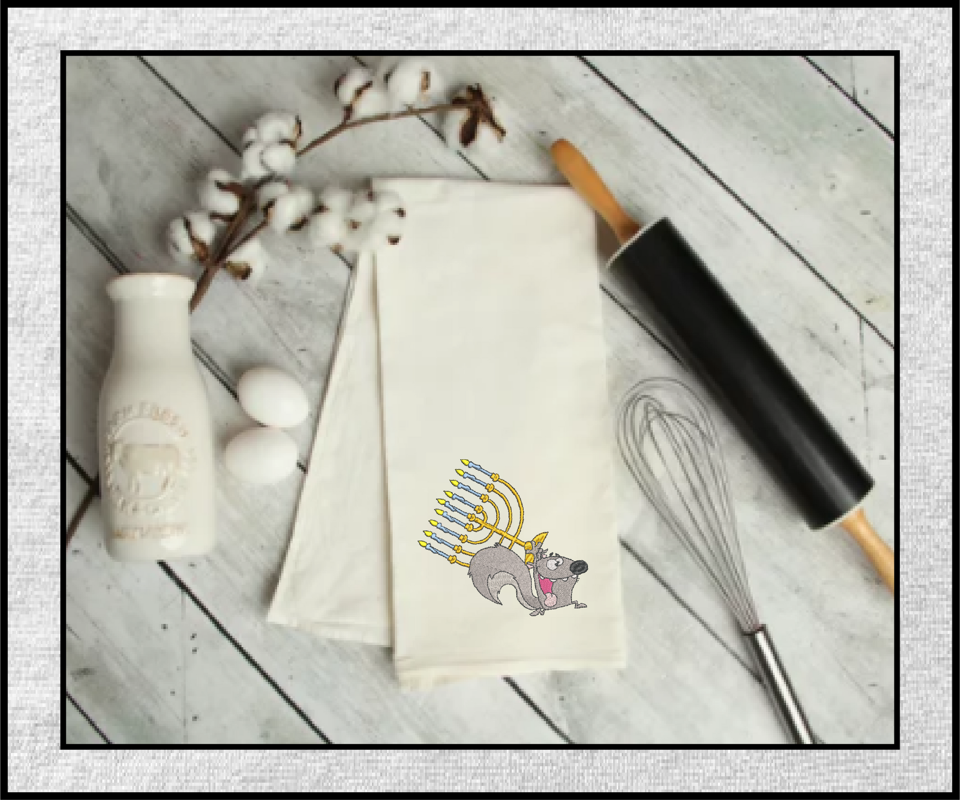 Celebrate the Festival of Lights with a whimsical twist! This Squirrel Running With Menorah Machine Embroidery Design blends playful charm with festive spirit, featuring a cheerful cartoon squirrel dashing with a menorah in paw.