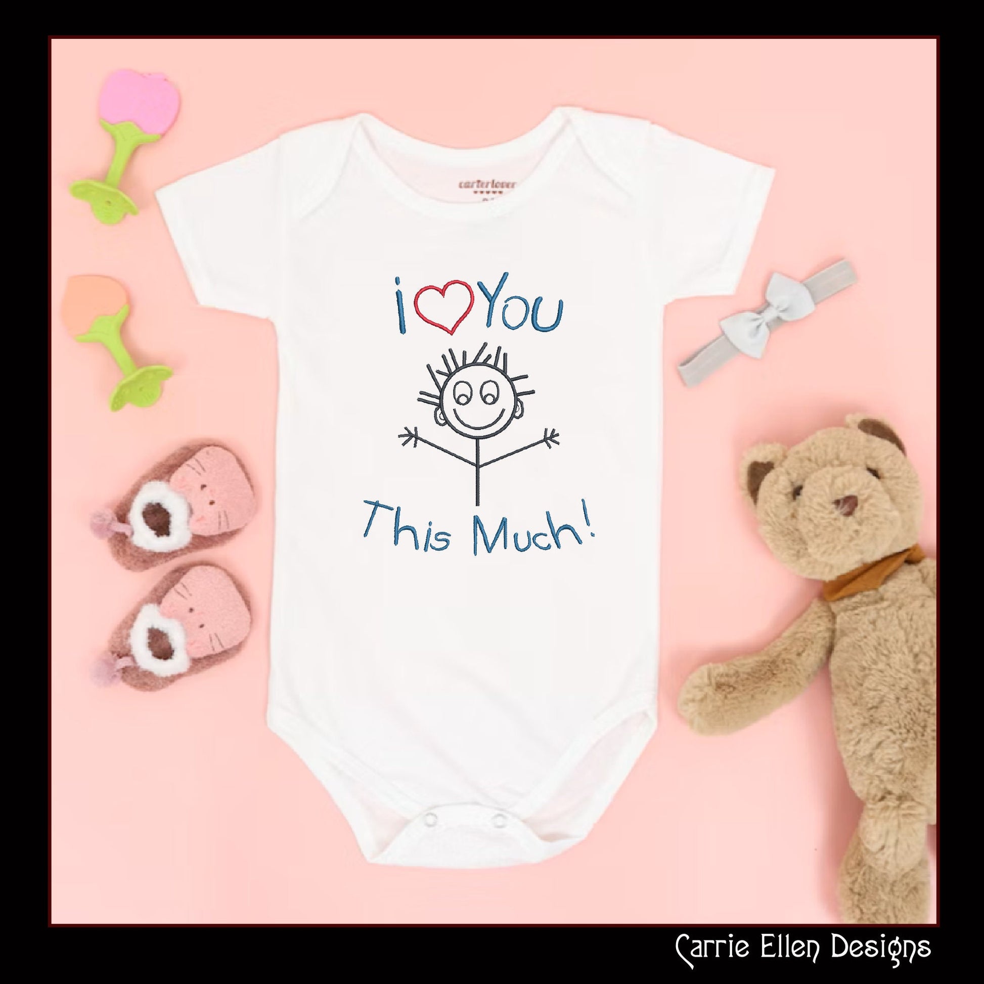 I Love You This Much – Stick Figure Machine Embroidery Design | Cute Kid Saying, 8 Sizes (1141)