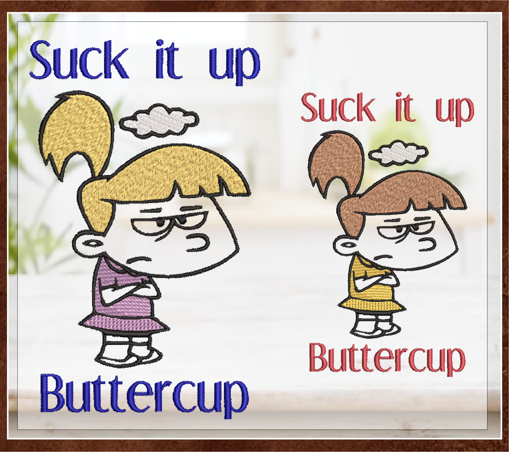 Suck it up Buttercup Machine Embroidery Design | Grumpy Little Girl Sketch | Funny Sarcastic Sayings and Quotes | 8 Sizes (0809)