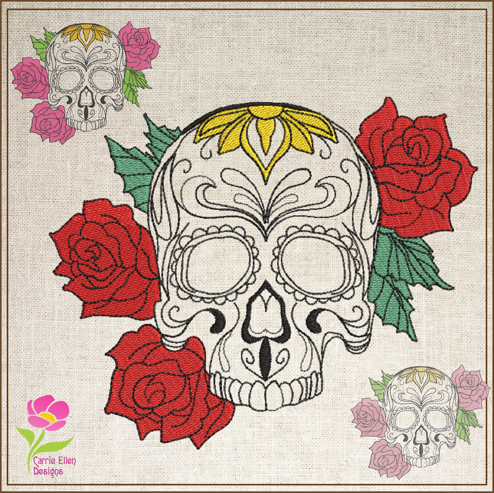 Sugar Skull with Roses Machine Embroidery Design | Day of the Dead Line Art Pattern | Dia de Los Muertos Embroidery | 6 Sizes (0573)