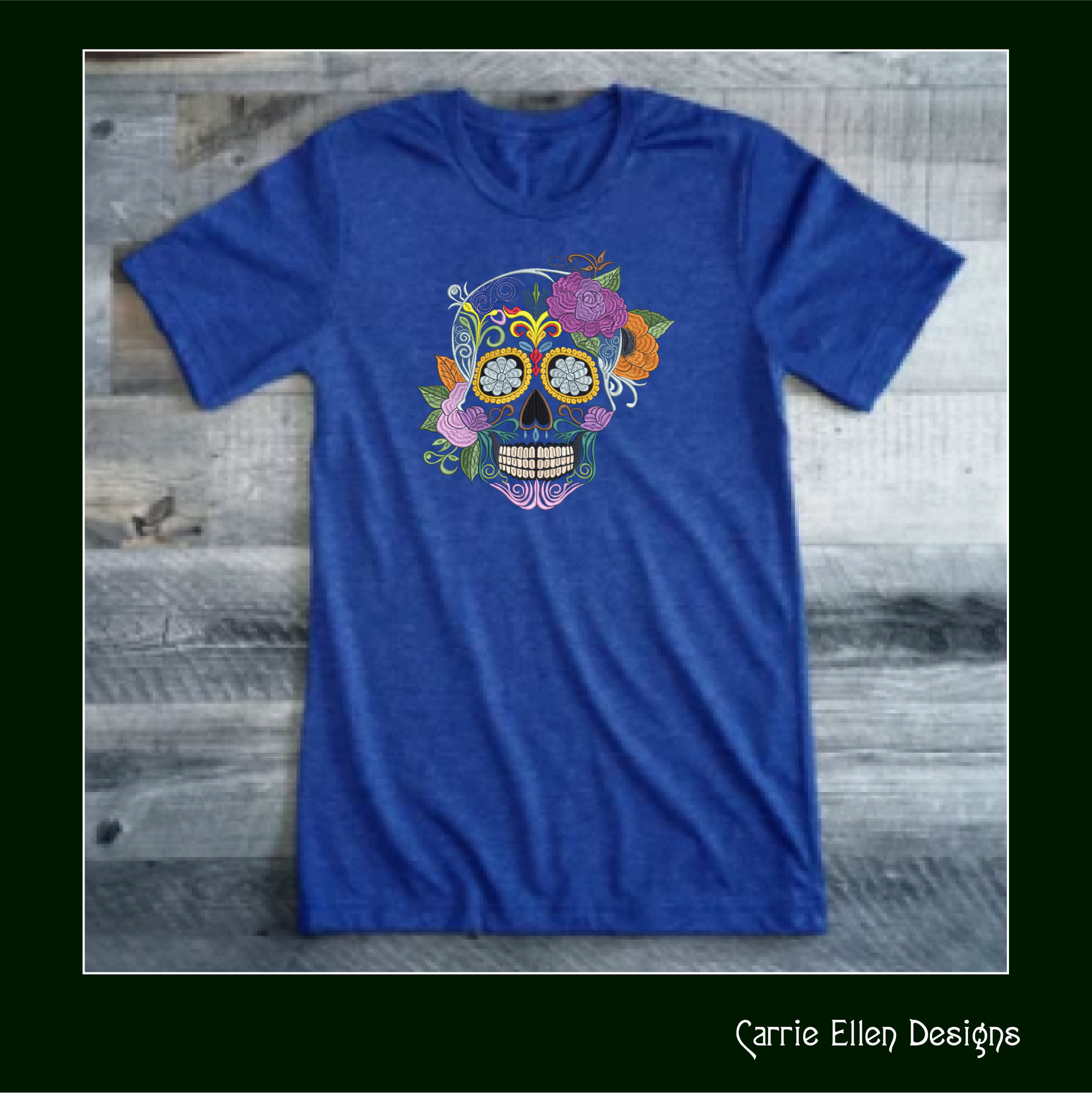 Bring vibrant tradition and bold artistry to your next project with this Sugar Skull with Flowers Machine Embroidery Design! Inspired by Dia de Los Muertos (Day of the Dead), this detailed sugar skull pattern is decorated with elegant floral elements, making it a perfect centerpiece for festive creations.