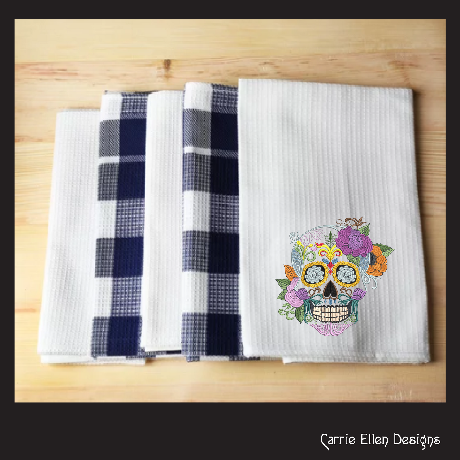 Sugar Skull with Flowers Machine Embroidery Design – Day of the Dead Pattern – 6 Sizes (1572)