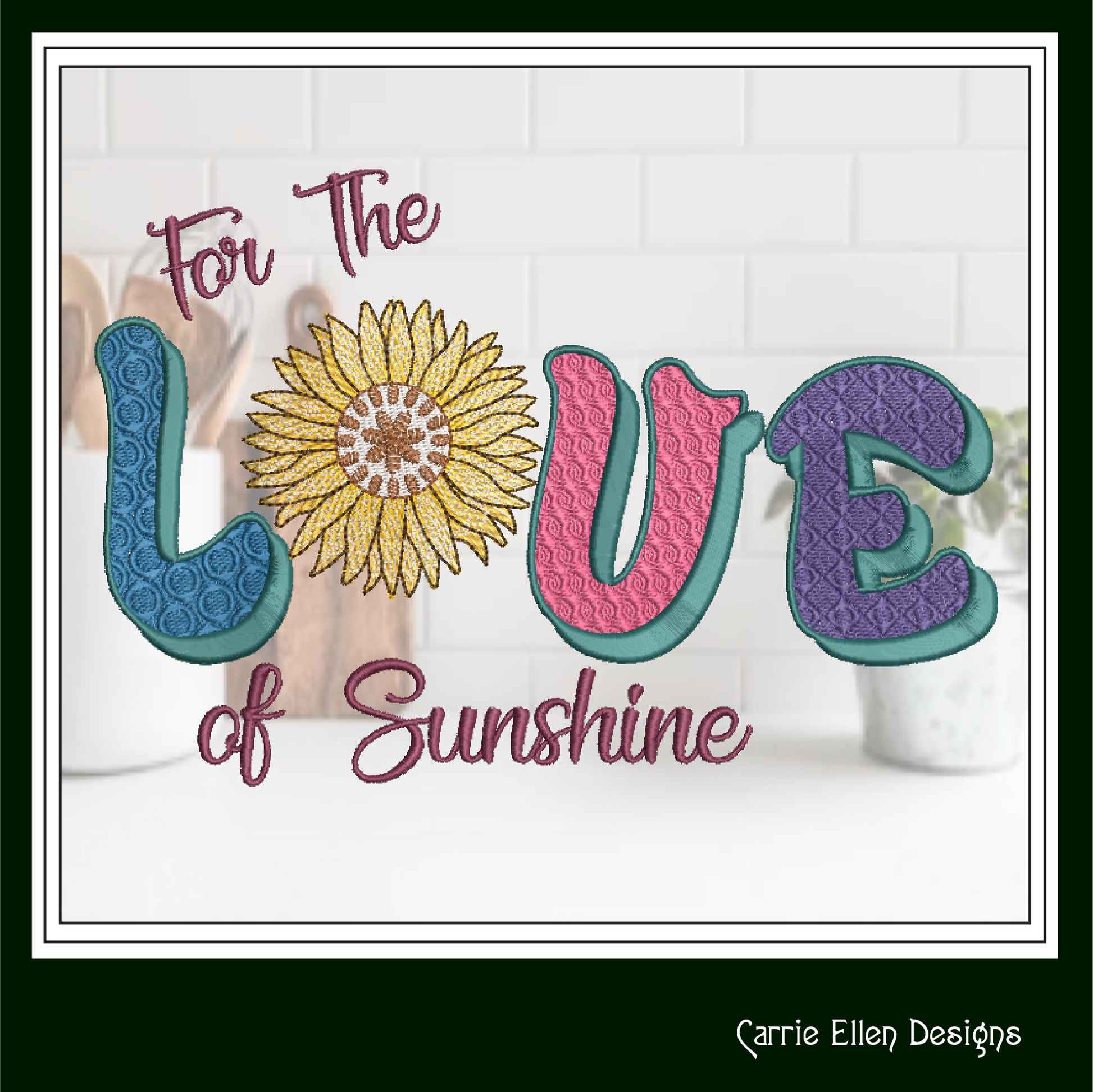 Sunshine Machine Embroidery Design | For the Love of Sunshine Saying | Positive Vibes & Happy Quotes | 6 Sizes (1747)
