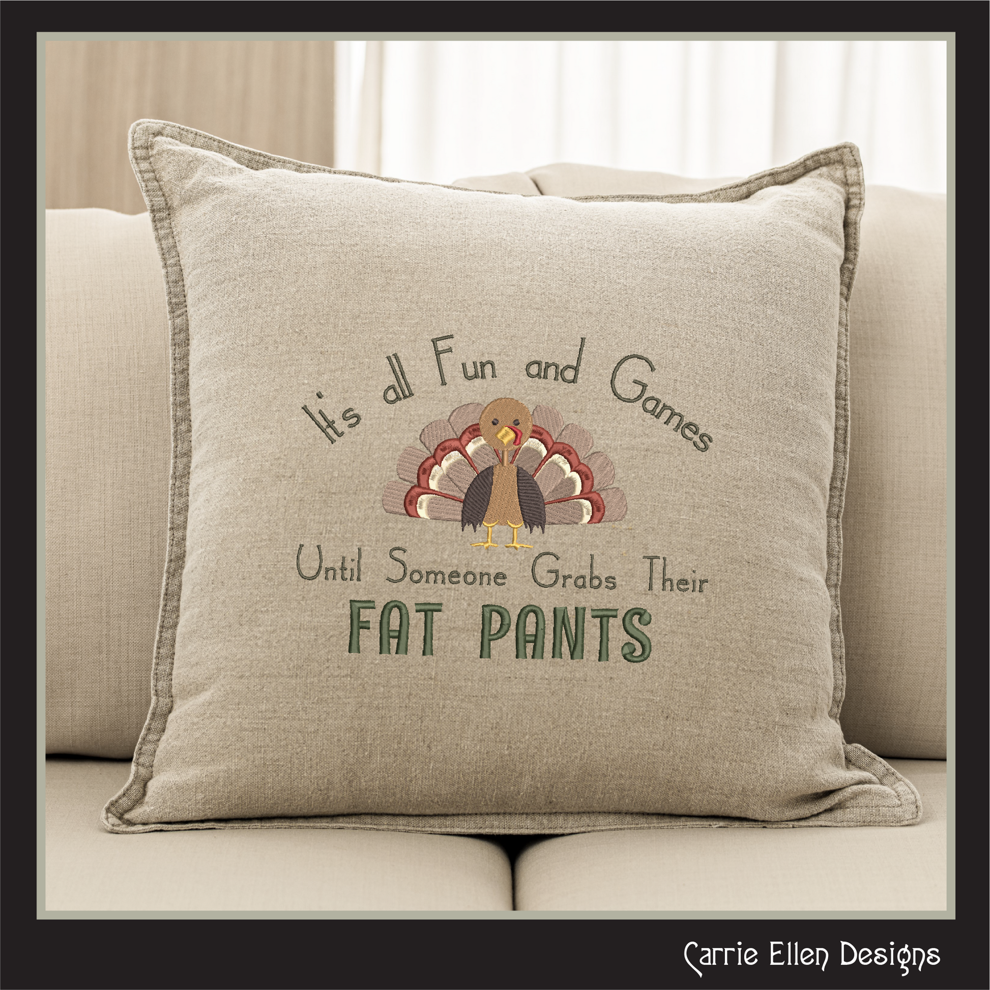 Fun Thanksgiving Machine Embroidery Design, Grab Your Fat Pants Snarky Embroidery, Sarcastic Funny Turkey Saying, 6 Sizes (2987)