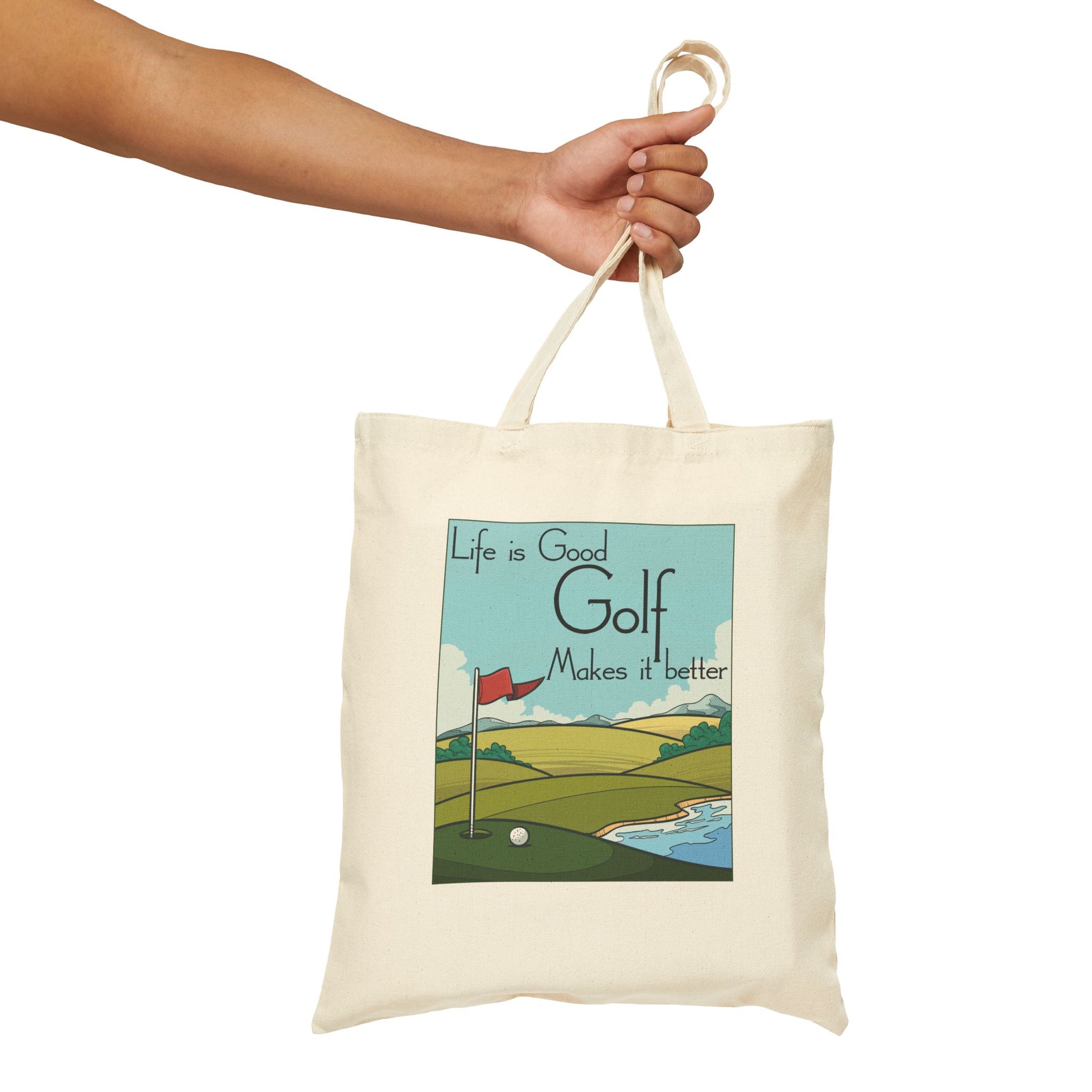 Life is Good, Golf Makes it Better Cotton Canvas Tote Bag – Eco-Friendly Reusable Golf Tote, Perfect Gift for Golf Lovers