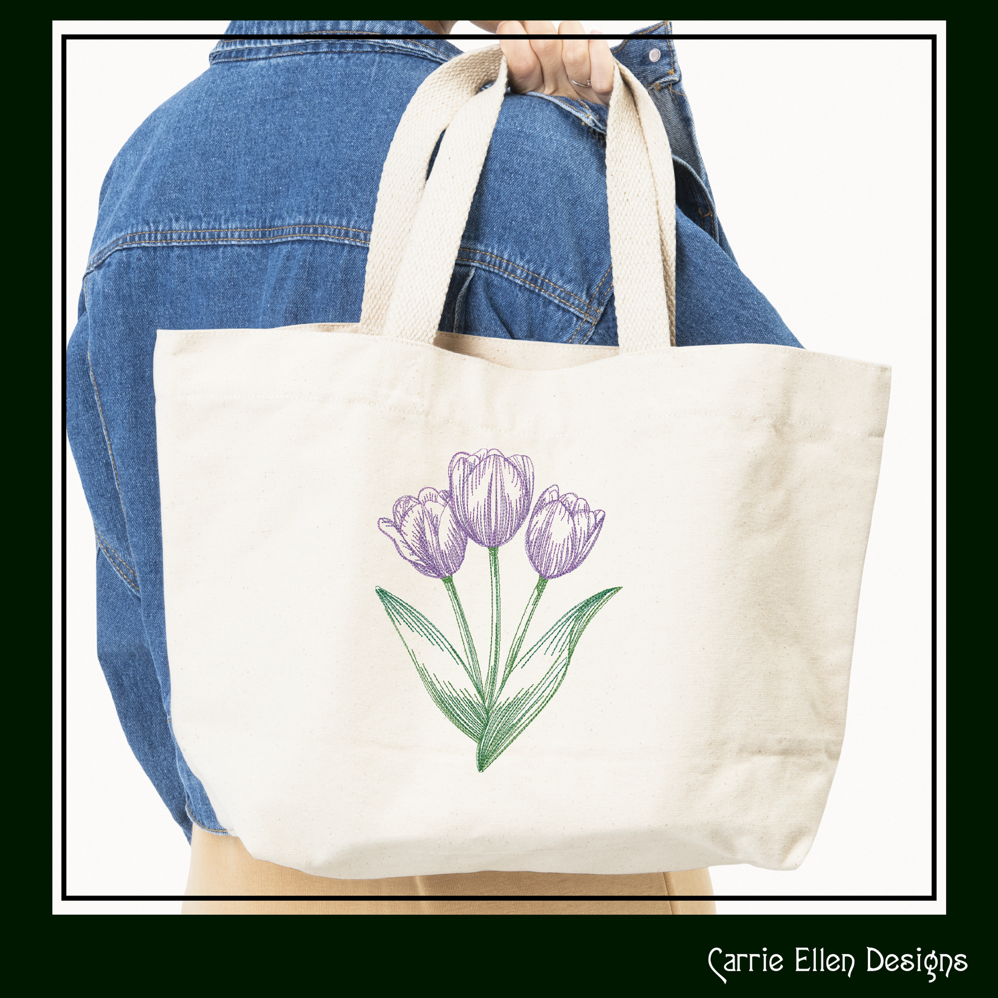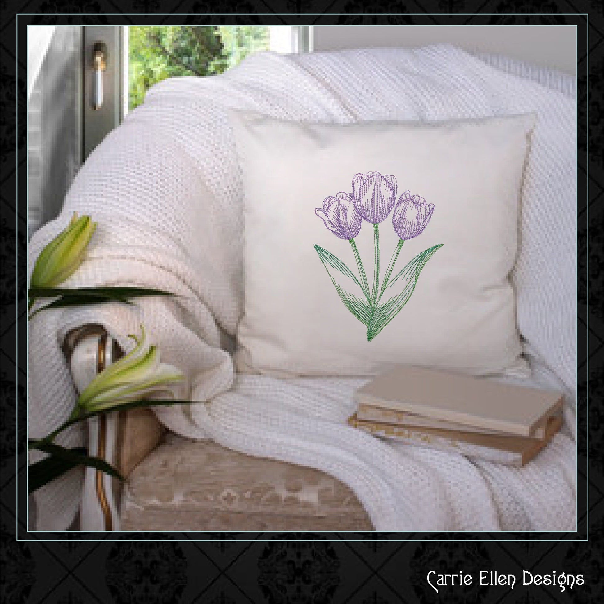 Tulips Embroidery Design | Sketched Floral Tulip Machine Embroidery Pattern | Delicate Flower Bunch in 6 Sizes (1943)