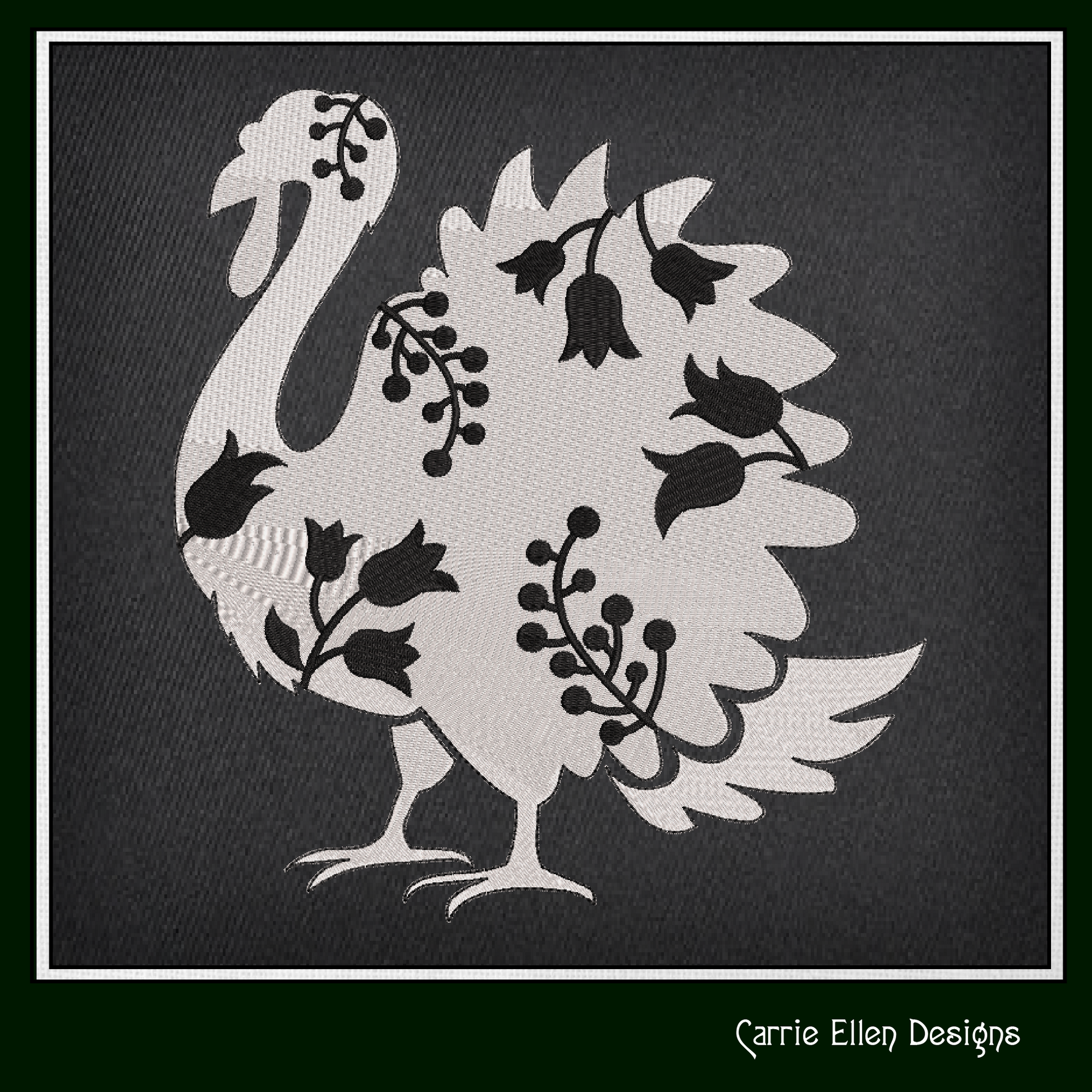 Floral Turkey Machine Embroidery Design – Wildflower Bird Silhouette – 6 Sizes (1618)
