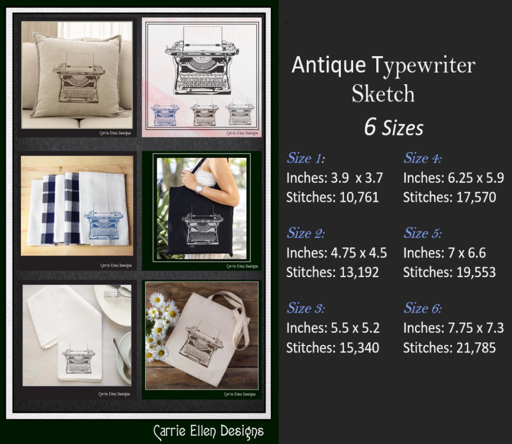 Vintage Typewriter Sketch Machine Embroidery Design, Antique Office Machine, Retro Line Art Design, 6 Sizes (2236)