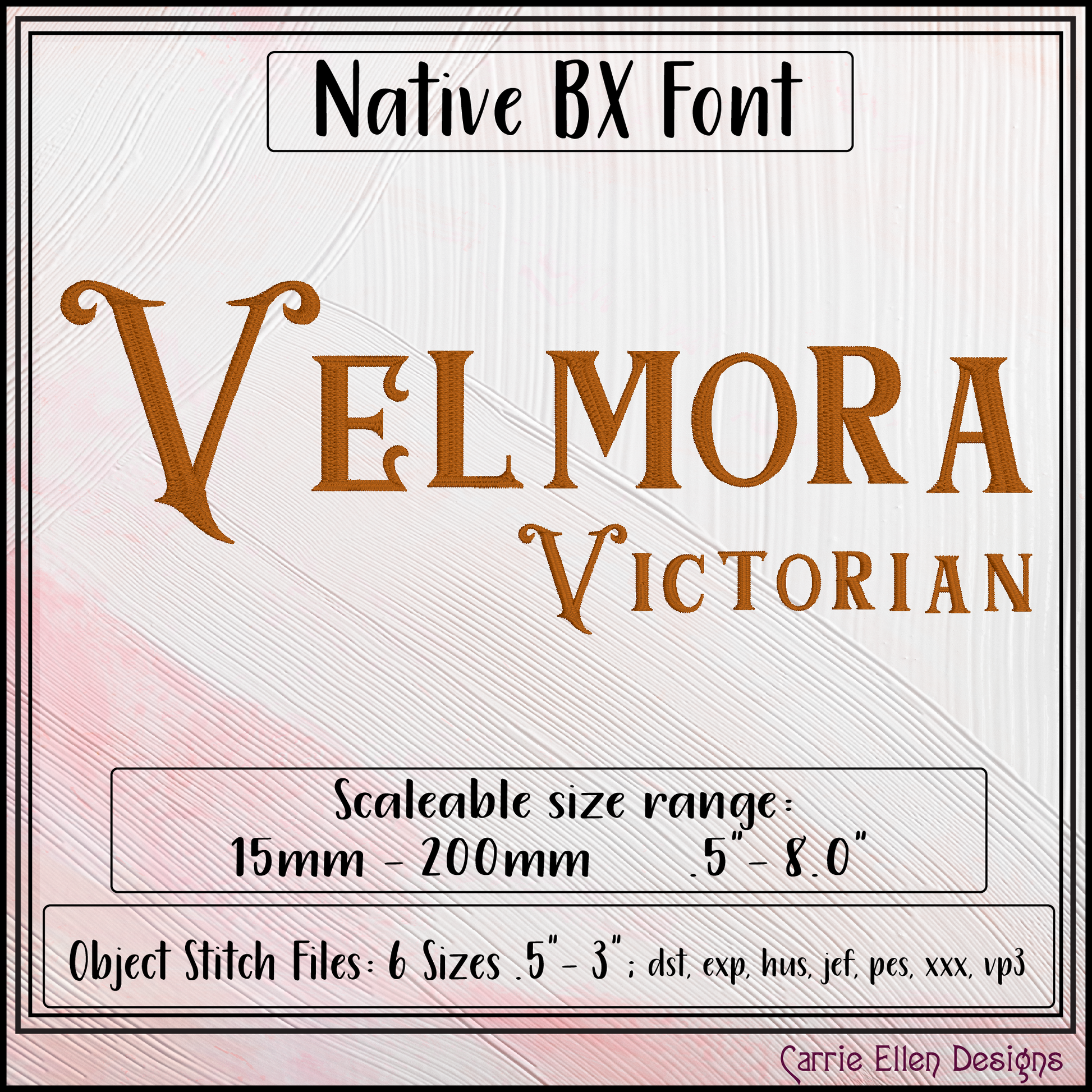 Velmora BX Fonts and Lettering Stitch Files, Victorian Deco Alphabet Machine Embroidery (3708)