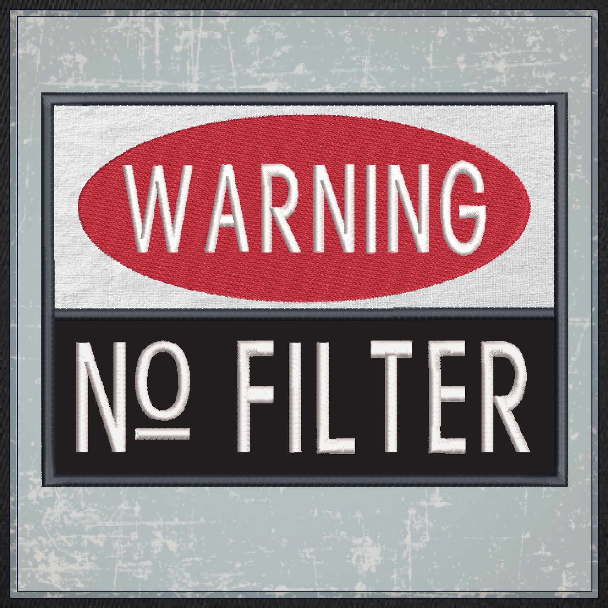 Warning No Filter Machine Embroidery Applique Design | Funny Humorous Saying Embroidery | Sarcastic Quotes Embroidered Design | 8 Sizes (0929)