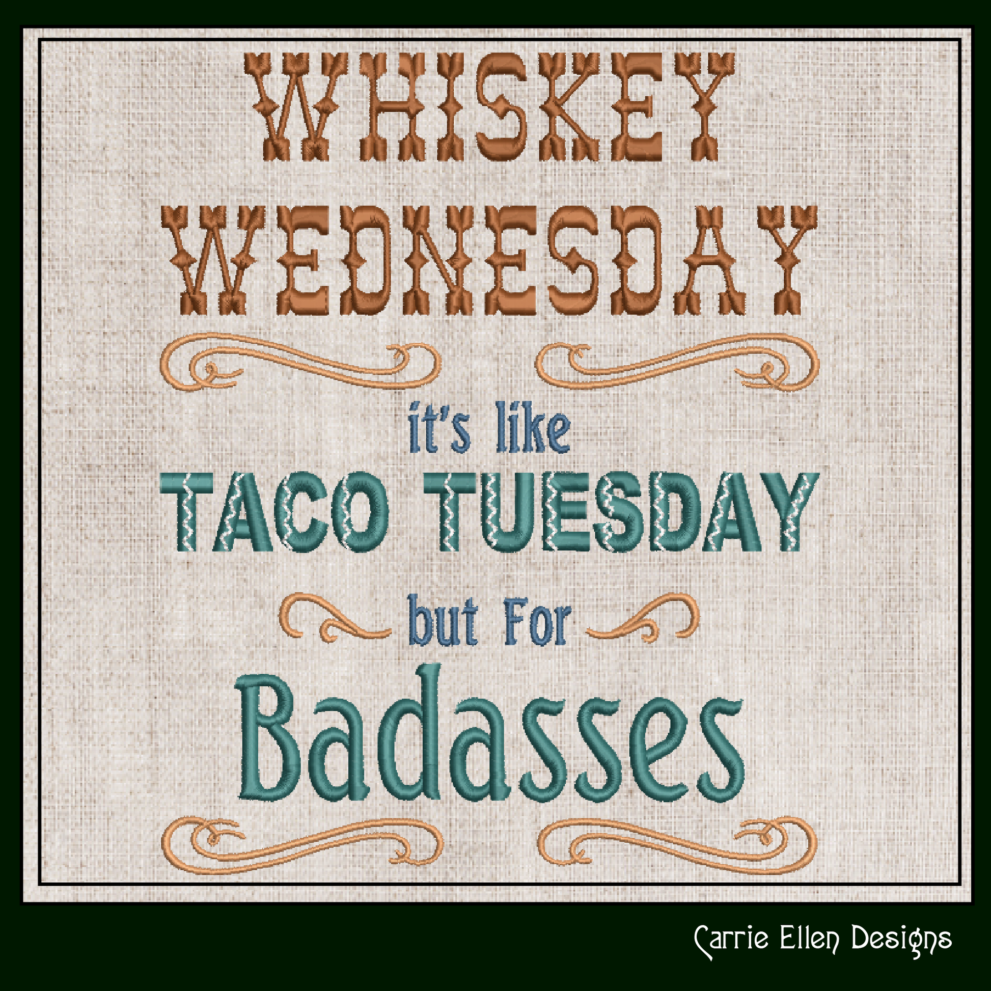 Whiskey Wednesday Taco Tuesday Machine Embroidery Design | Food and Drink Quote Pattern, 6 Sizes (1724)