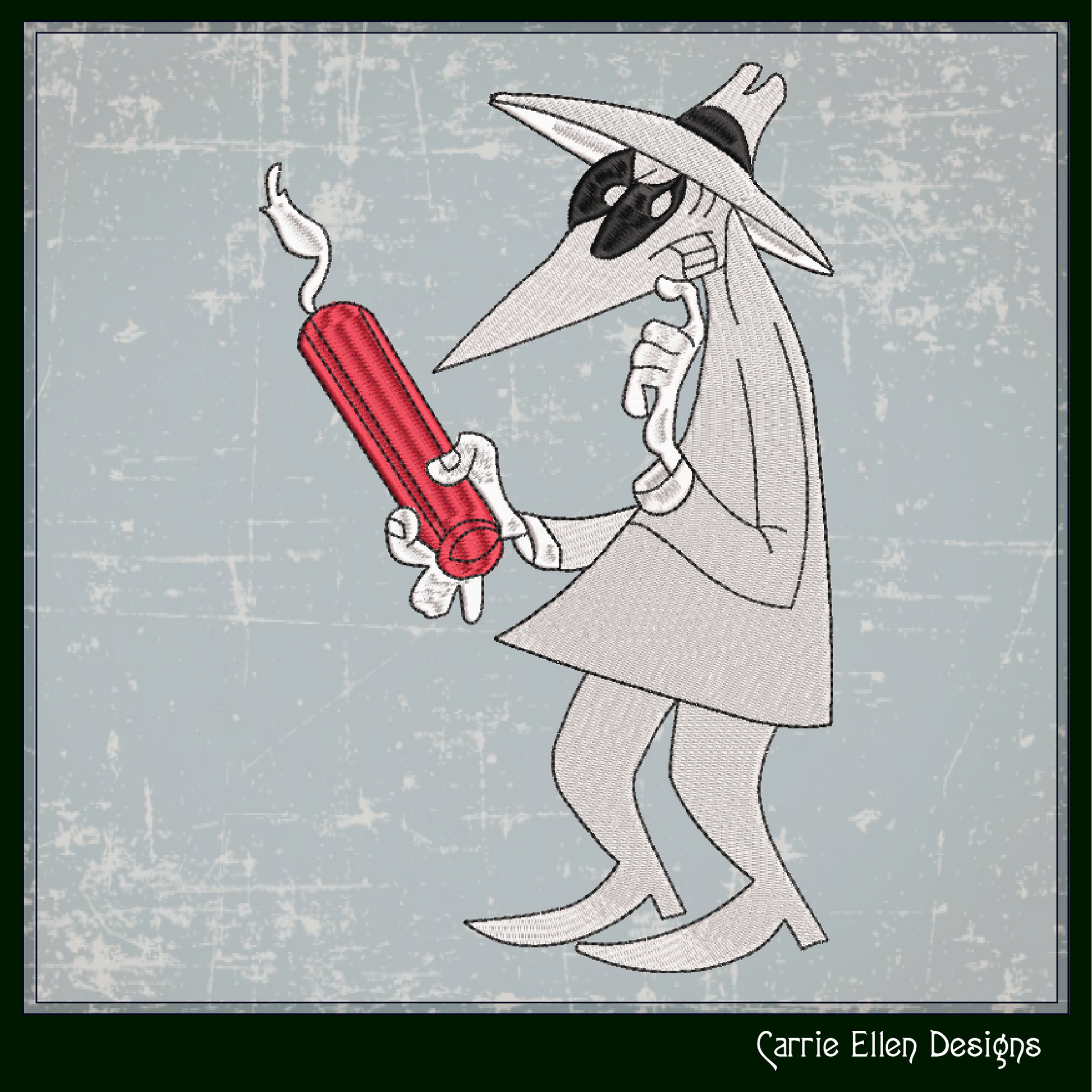 Spy vs. Spy White Machine Embroidery Design – Good vs Evil Dynamite Bomb Classic Cartoon, 6 Sizes (2091)
