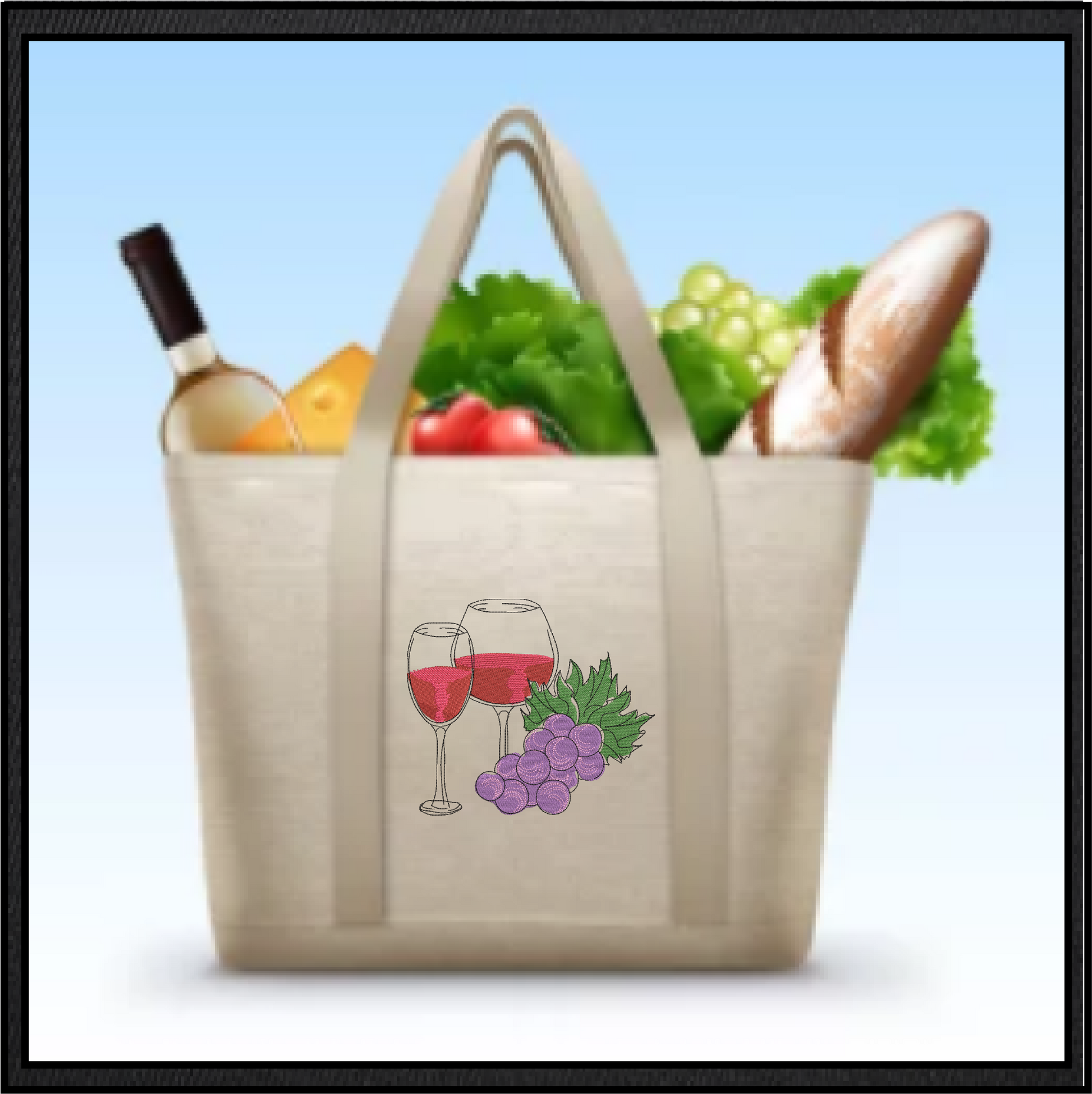 Wine and Grapes Machine Embroidery Design – Wine Glass & Grape Vine Pattern – Elegant Kitchen, Bar, and Gift Embroidery – 10 Sizes (0184)