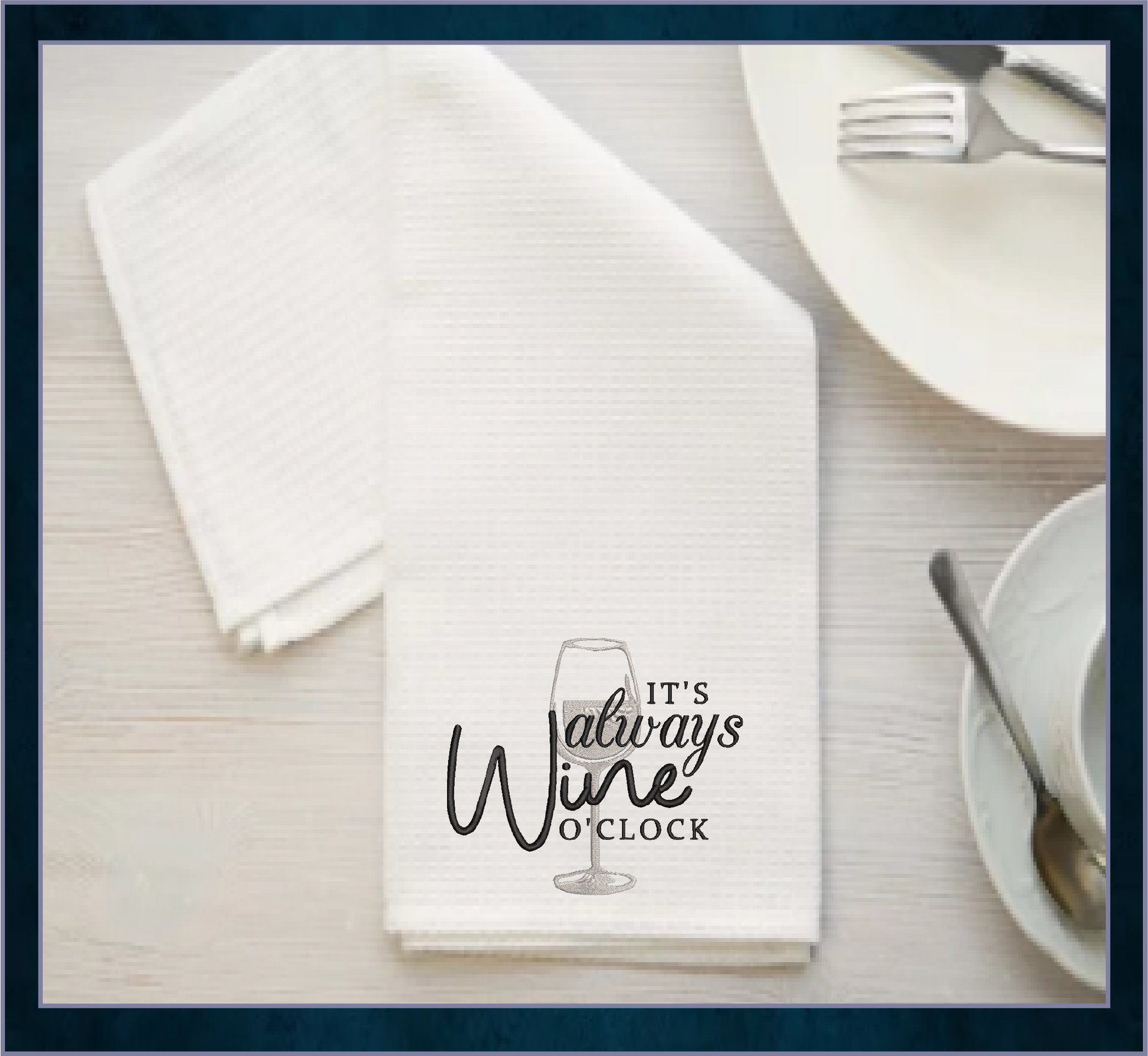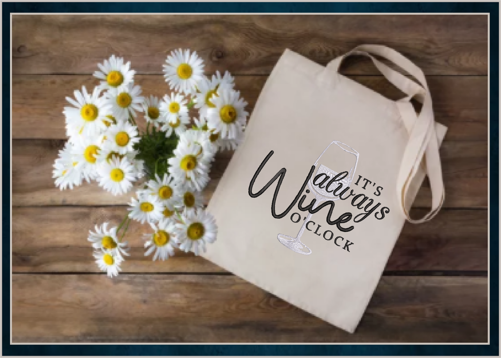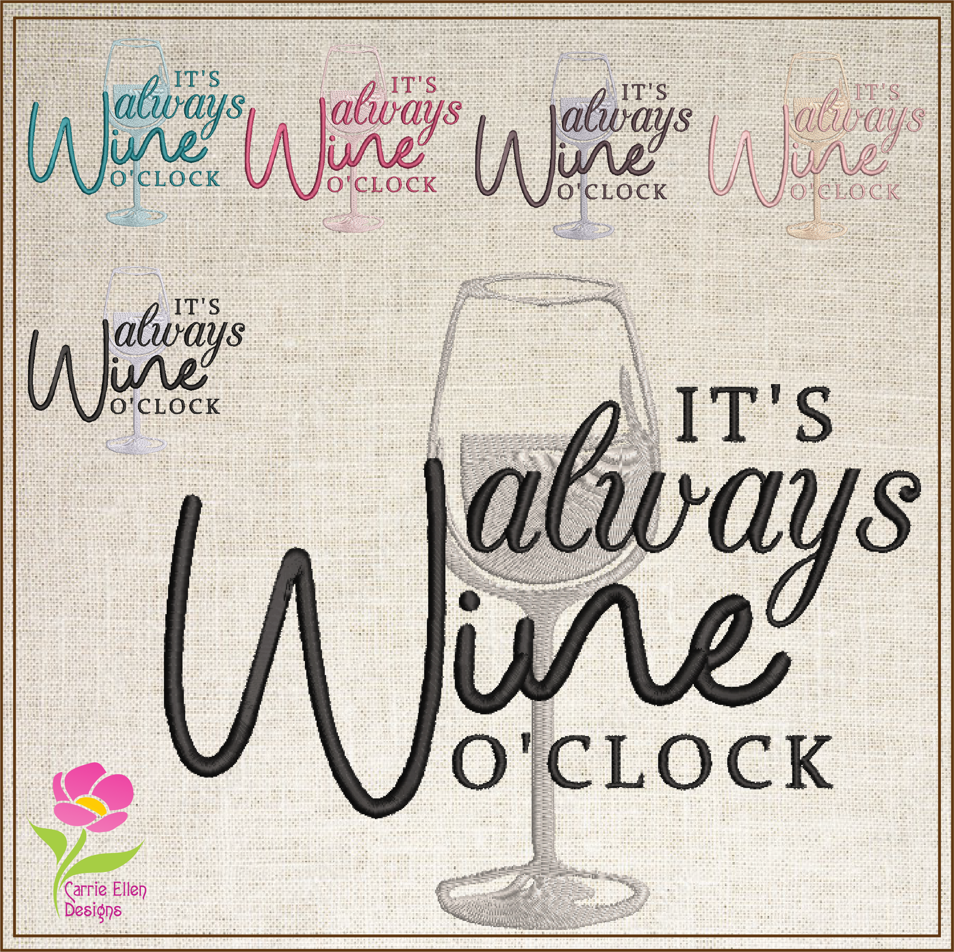 It’s Always Wine O’Clock Machine Embroidery Design | Wine Glass Embroidered Sayings | Fun Wine Quotes Embroidery | 6 Sizes (0591)