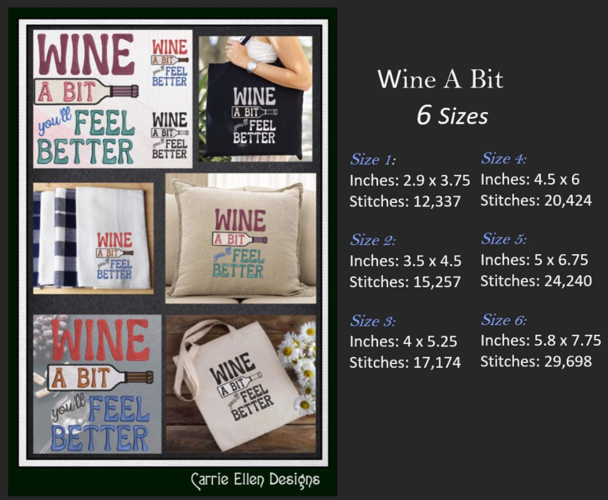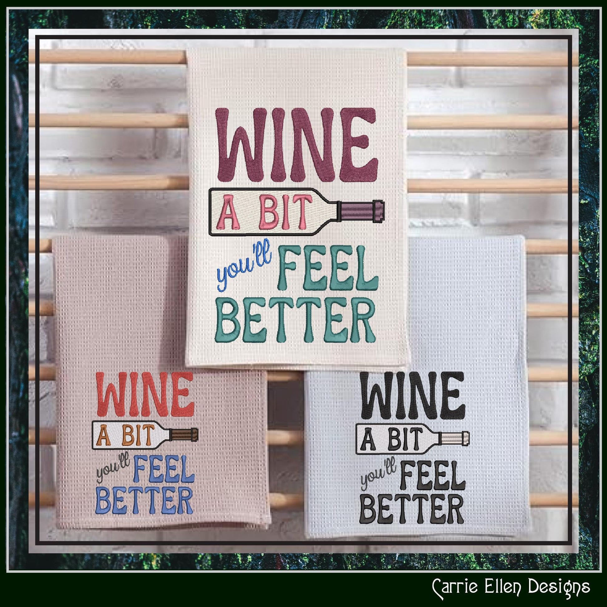 Wine Themed Machine Embroidery Design, Wine a Bit, You'll Feel Better Sarcastic Wine Drinker Sayings and Quotes, 6 Sizes (2362)