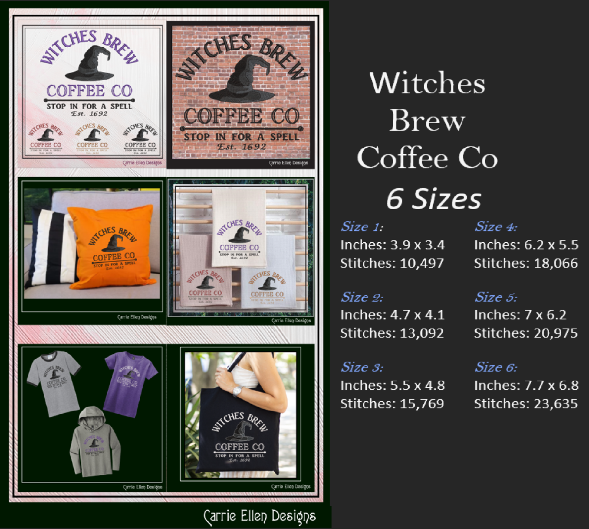 Witch Machine Embroidery Design Saying | Witches Brew Coffee Co. | Halloween Witch Theme Embroidery Pattern | 6 Sizes (1904)