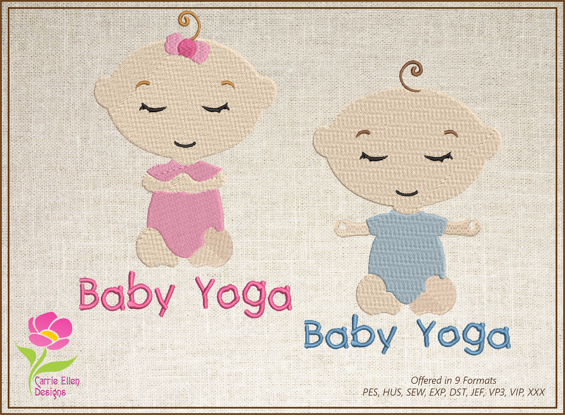 Yoga Machine Embroidery Design Bundle – 2 Cute Baby Yoga Pose Designs, Boy & Girl, 8 Sizes Each | Health & Fitness (0119)