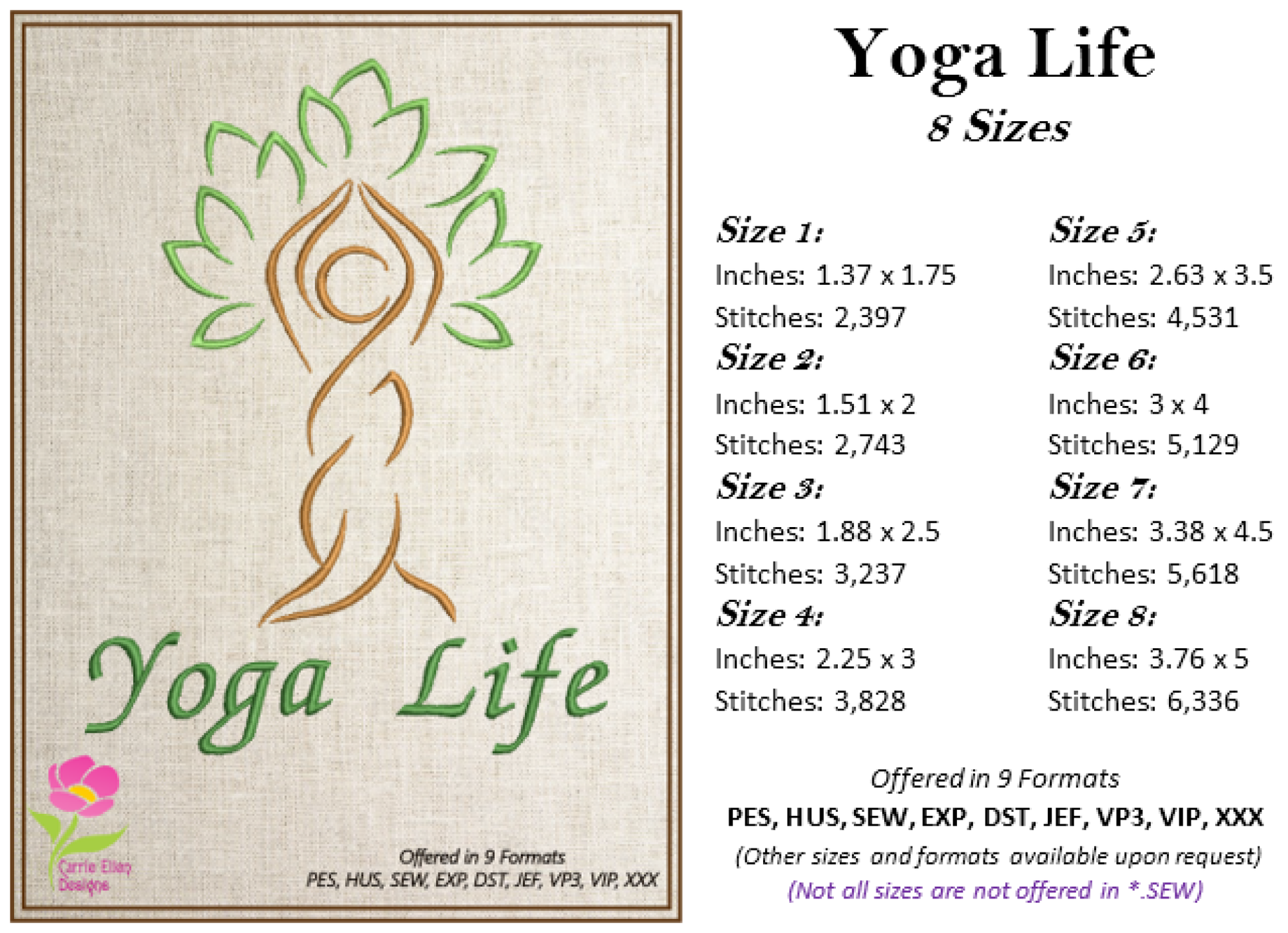 Yoga Life Machine Embroidery Design - Tree of Life Yoga Pose, Fitness & Wellness Embroidery File, 8 Sizes (0625)