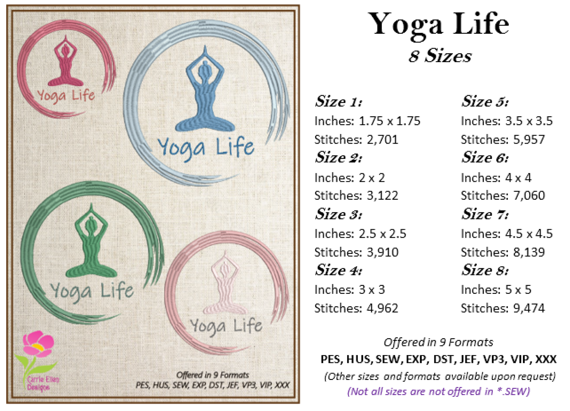 Yoga Life Machine Embroidery Design - Yoga Pose Embroidery - Sports and Fitness Embroidery Designs, 8 Sizes (0626)