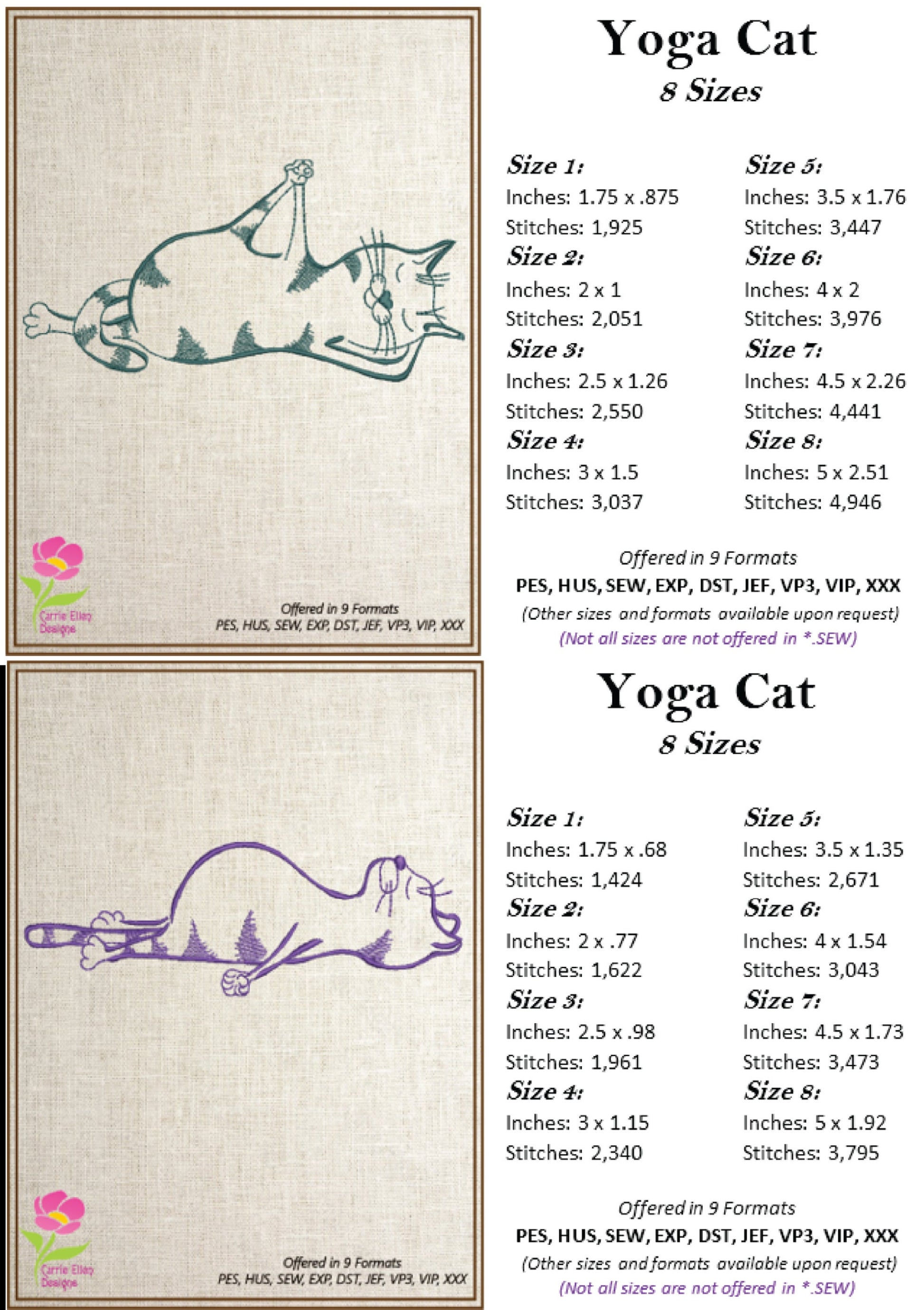 Stretch your creativity with this Yoga Cats Bundle Machine Embroidery Design set! Featuring adorable cats in hilarious yoga poses, this bundle brings a playful twist to mindfulness and feline charm. Perfect for stitching onto gym bags, towels, tees, or gifts for yoga lovers and cat enthusiasts alike. Add some humor and zen to your next embroidery project!