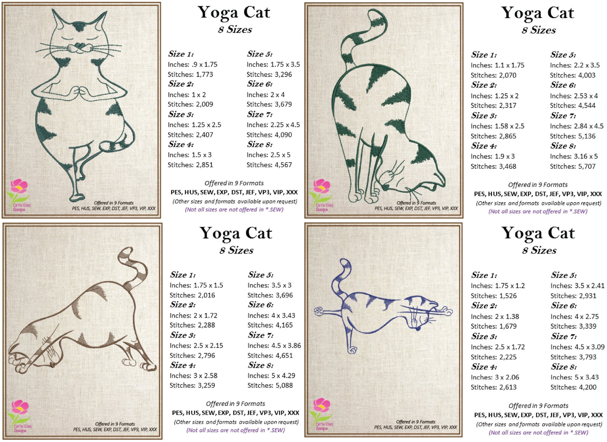Yoga Cats Bundle Machine Embroidery Designs, Cat Yoga Poses Embroidery, Humorous Funny Animal Poses, 10 Designs, 8 Sizes Each (0121)